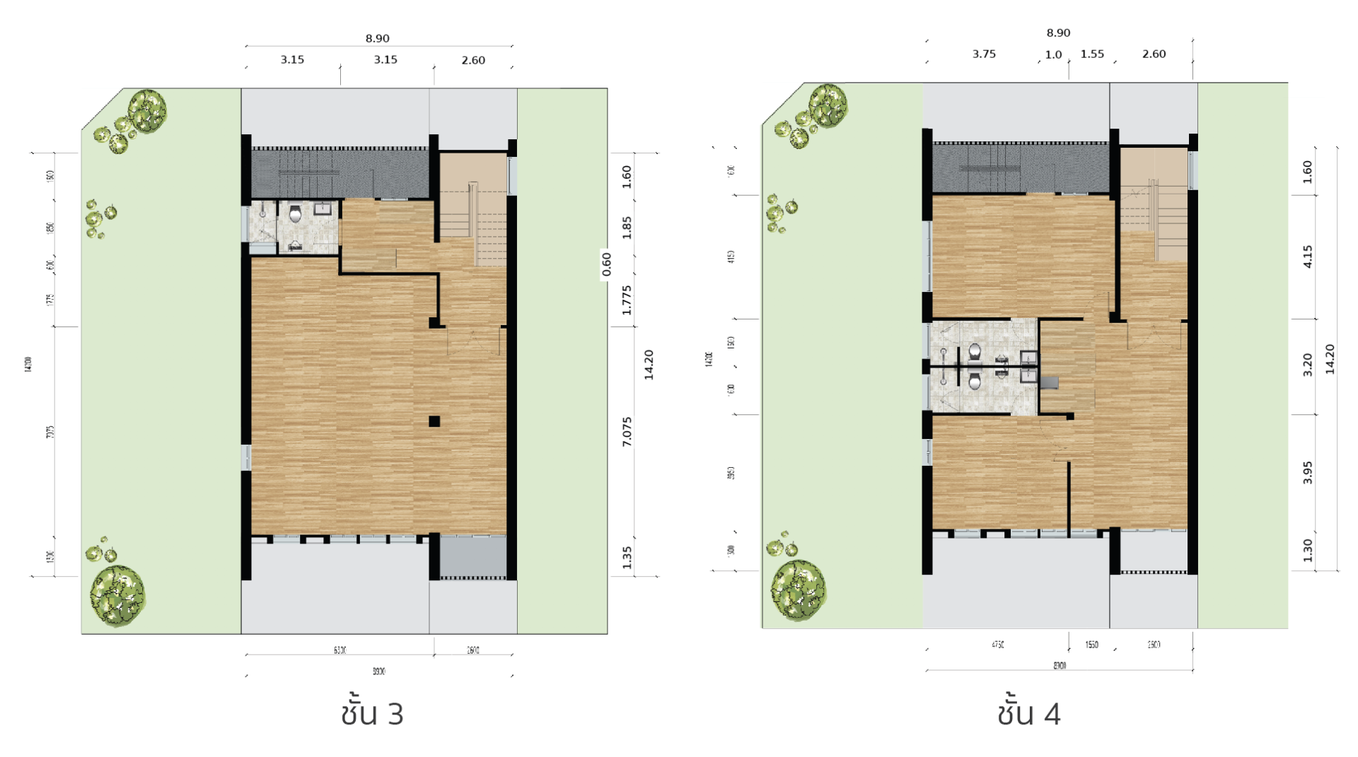 ชั้น 2-4 ออกแบบเพื่อ แบ่ง กั้น จัดสรรพื้นที่ ให้เป็นได้ทั้งที่ทำงานหรือที่พักอาศัย ได้ตามความต้องการ